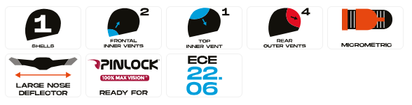 Üstelik yapıldığı malzeme optimum görüş sağlar. Tasarım açısından vizör, son derece güvenli bir kask imajını güçlendiren köşeli ve sert şekillere sahiptir.