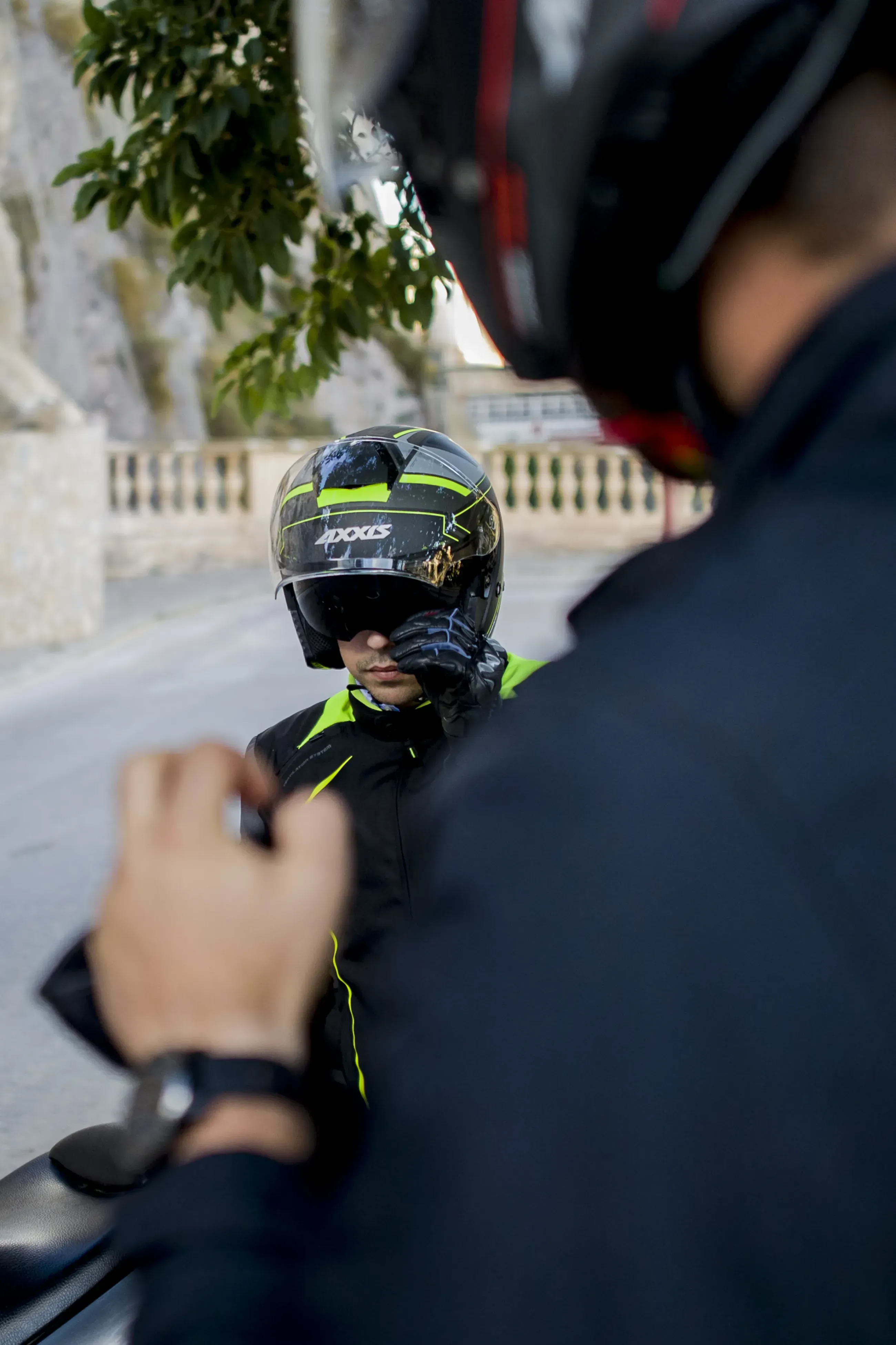 AXXIS Mirage SV, şehir içi sürüşlerde keyif almanızı sağlamak için gerekli tüm özelliklere sahiptir. Kabloyla çalışan güneş vizörü, gerektiğinde güneş ışığından sizi korur ve mikrometrik kapanışı, kaskınızı bir saniyeden daha kısa sürede takıp çıkarabilmenizi sağlar.